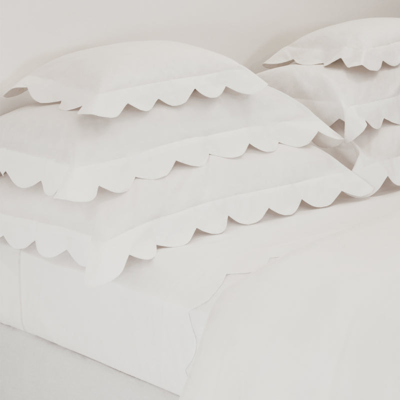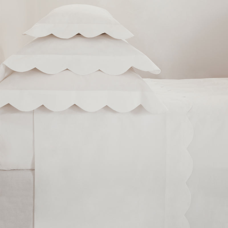 Handcrafted with a simple scallop edge border, the Roma bed linens are available in 100% fine Italian linen, mercerised combed 100% cotton in sateen.