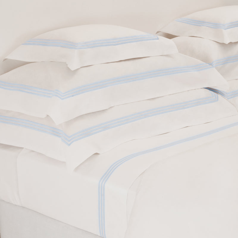 The embroidered cord trim is available in an array of colours, and includes white on white. Crafted using the finest Italian-milled linens, at the most prestigious heritage workshops in Italy.