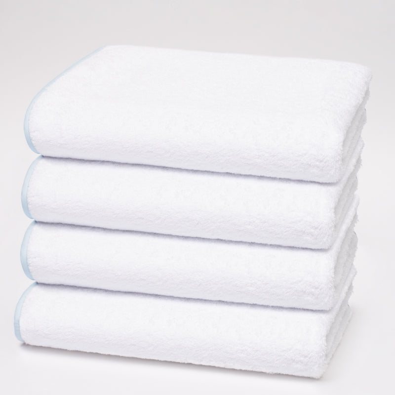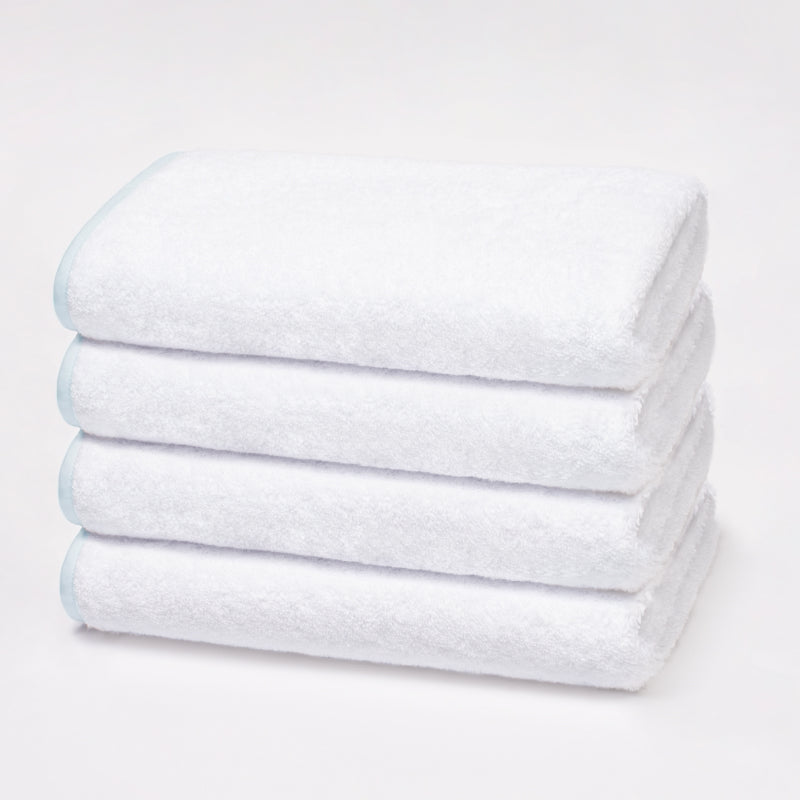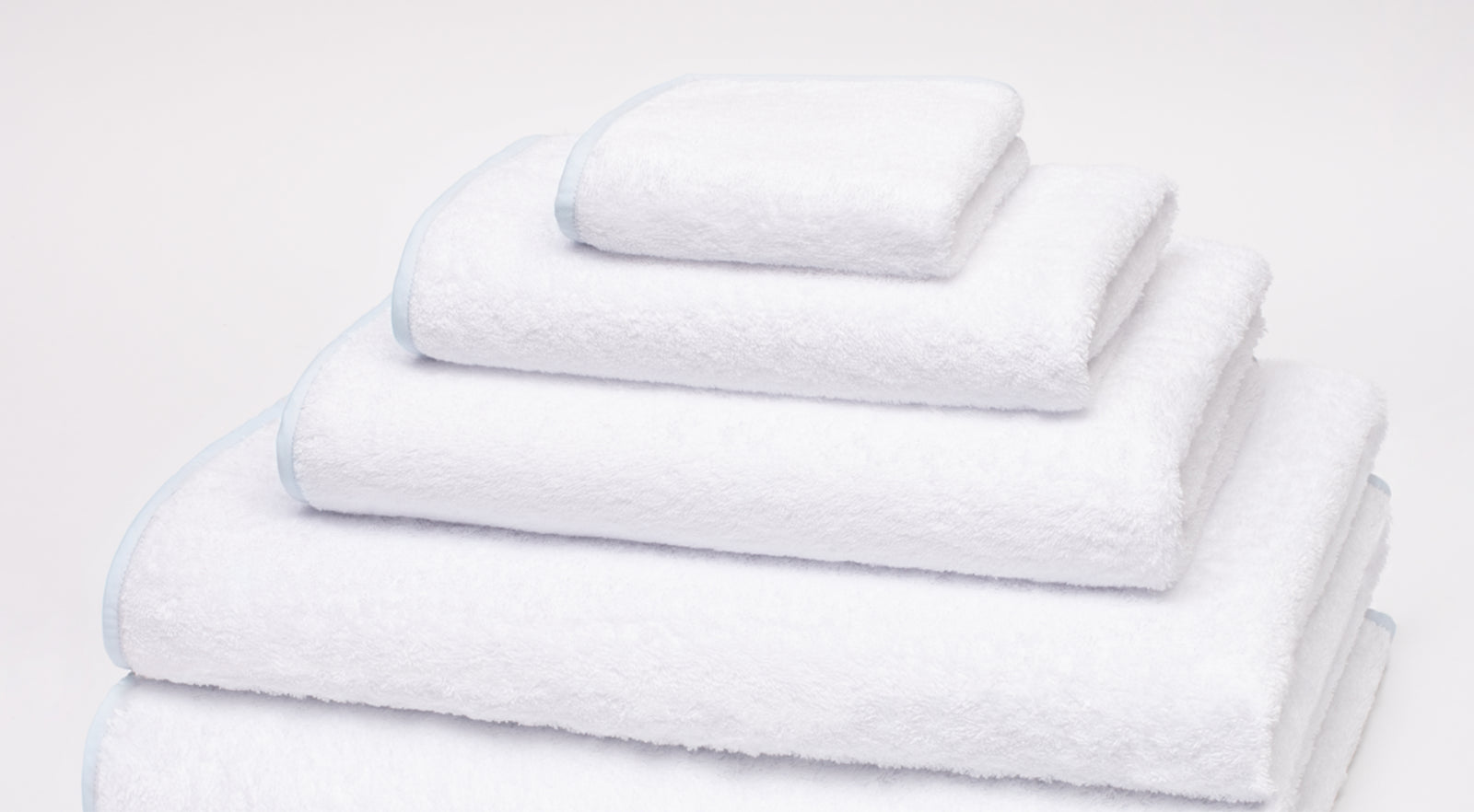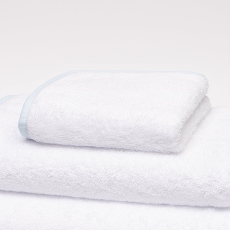Crafted in soft plump cotton towelling or cotton waffle, and delicately finished with a fabric binding edge. The Tuscany bath linens have a straight edge, creating a subtle modern design to any bathroom. With the binding available in a variety of colours.
